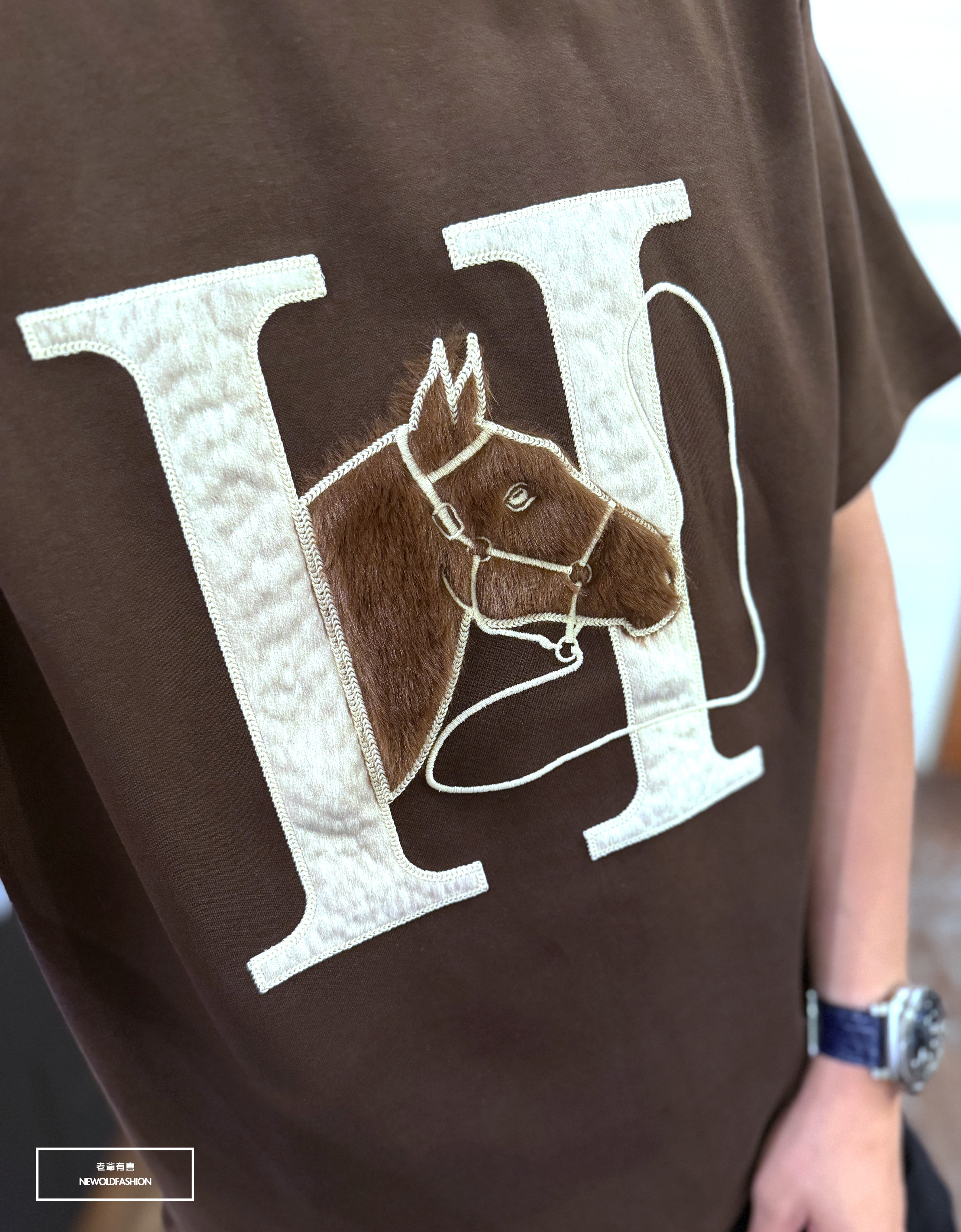 『新品上市』重磅絨面駿馬浮雕短T(NOF2604Z8007)-咖啡