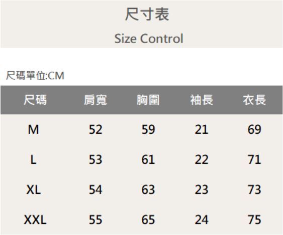 四個尺寸(M、L、XL、XXL)