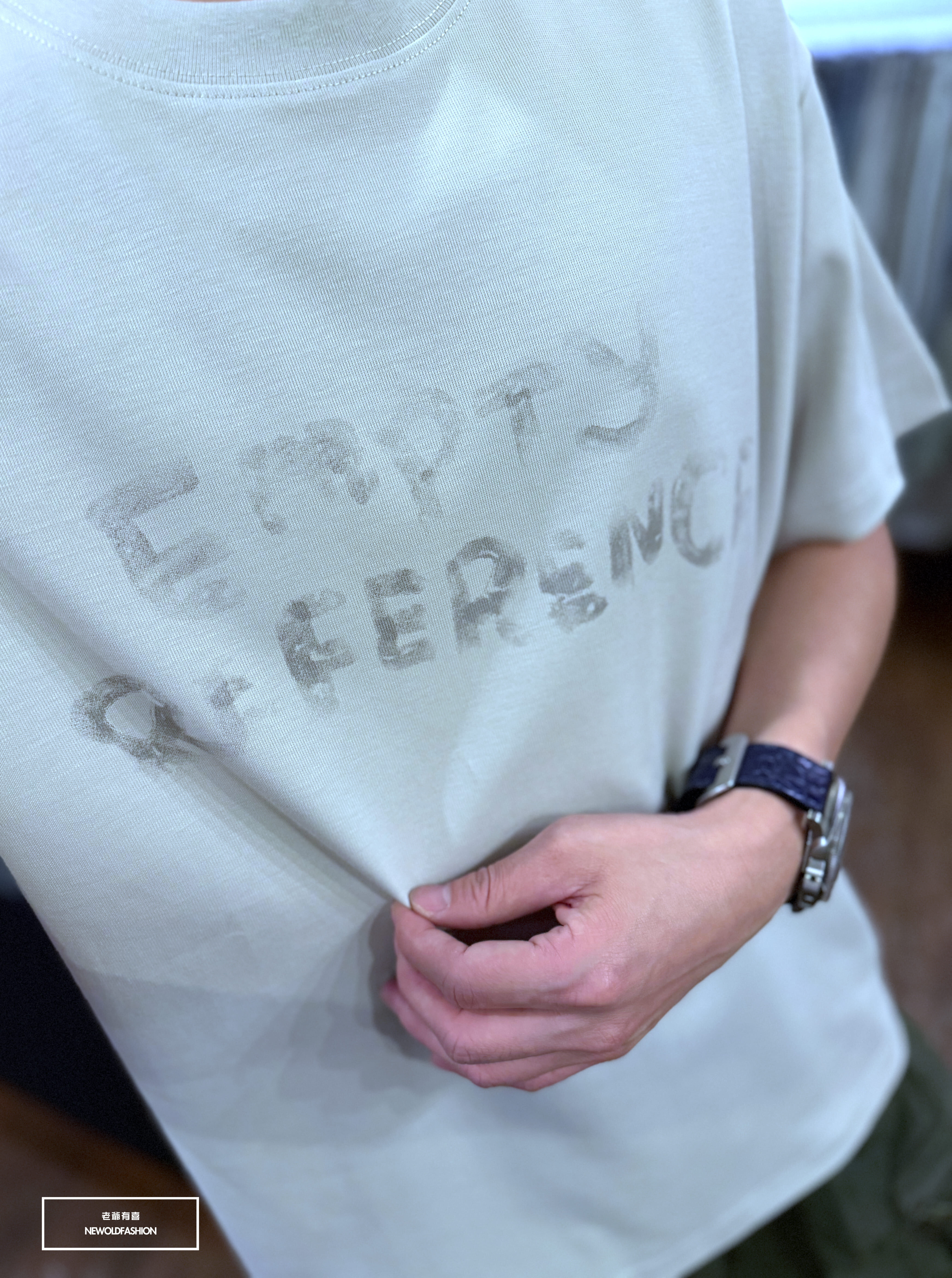 『新品上市』重磅手繪英字殘影短T(NOF2604Z8130)-灰卡其