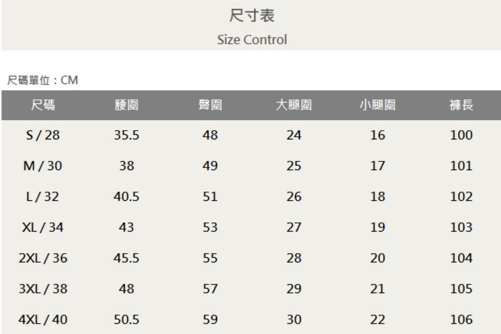 七個尺寸(S、M、L、XL、XXL、XXXL、XXXXL)